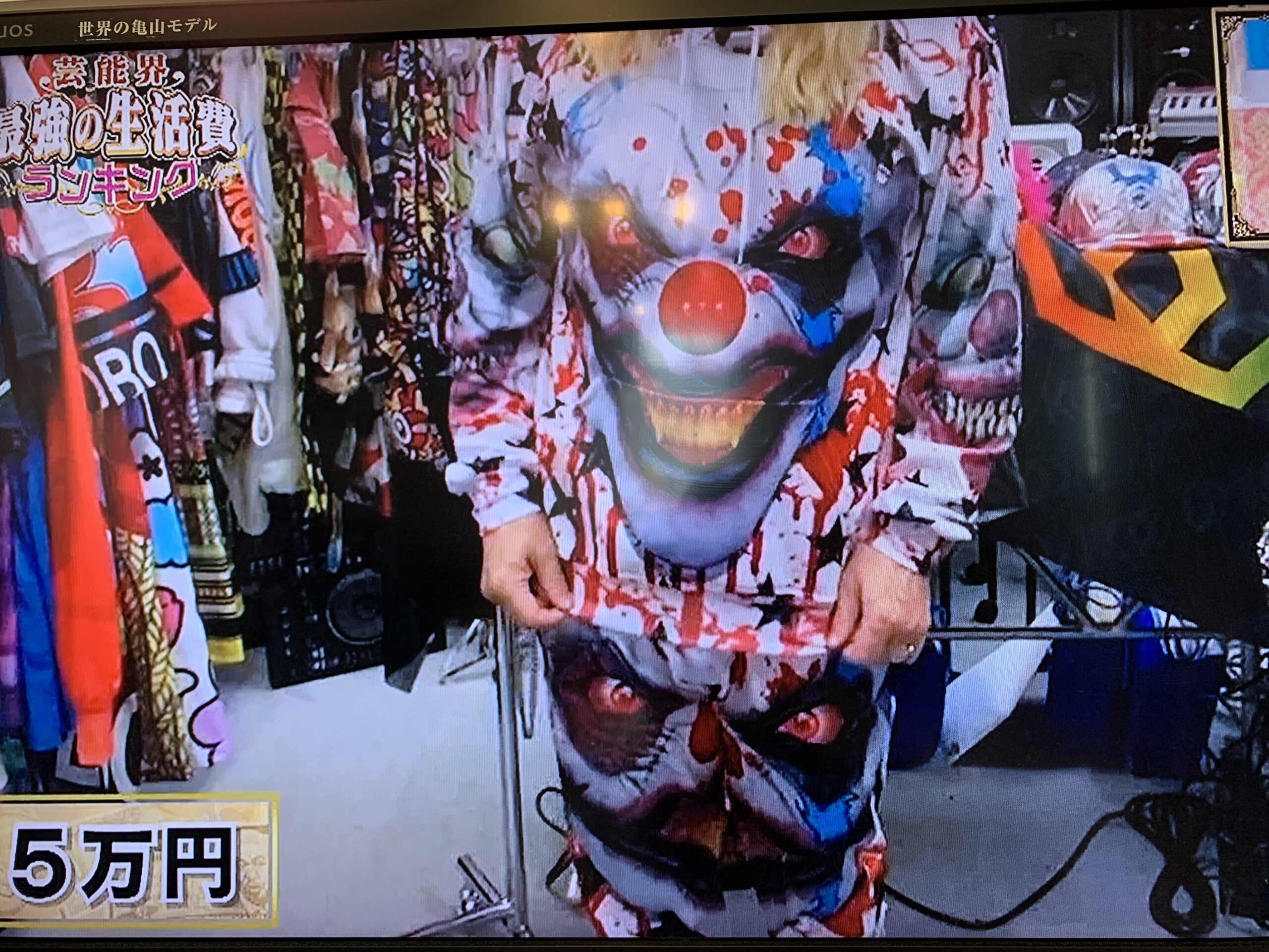 こちらの極悪なピエロが描かれたデザインの服は部屋着だそうで、5万円したものだとか。これでくつろげるってKOOさんなかなかですね~ 笑