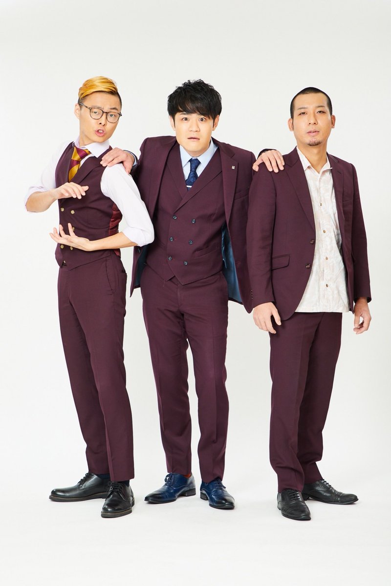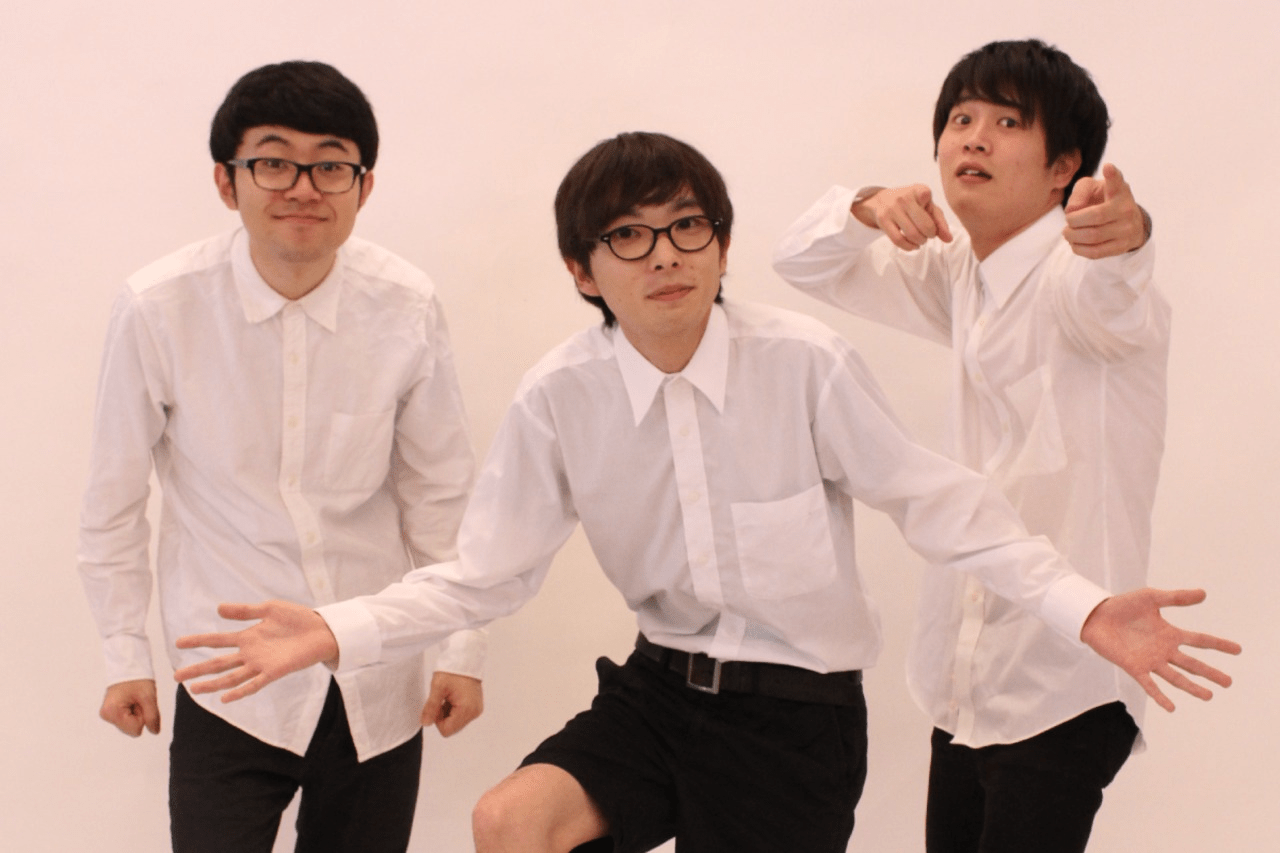左:げんせいさん(25歳)と真ん中:たむかいさん(25歳)、右:銘苅(めかる)さん(28歳)によるお笑いトリオです。