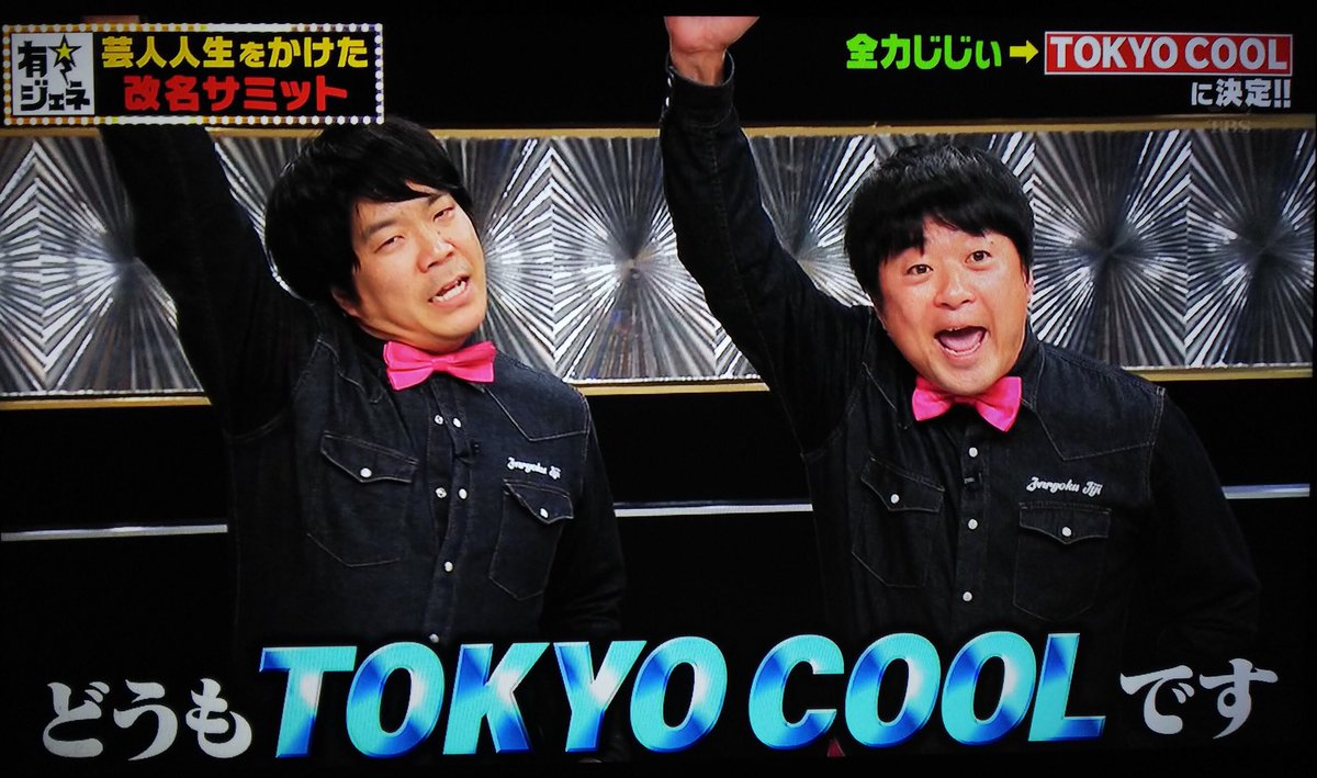 このため、ネタバトルで「インディアンス」に勝ったことによりレギュラー出演していた深夜番組の「有田ジェネレーション」で「改名サミット」という企画をしてもらい、出演者たちにいろんなコンビ名を考えてもらった結果、2019年12月、「TOKYOCOOL」に名前を変えることが決まりました!